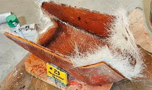 That black gunky stuff is an expensive coat of heavy, heavy primer that will prevent the fiberglass over coating eating the foam away. The next step you’ll see is Bondo time. Autobody filler will slapped on, then it’s time for sanding and shaping.