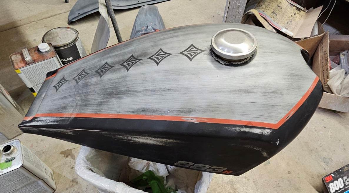 Don Duffin of San Antonio really liked his tank but it was in terrible shape. See here the massive bubbling of paint. The tank was built from general purpose resin which was eaten away by ethanol and the painter didn’t rough the surface for paint to adhere.