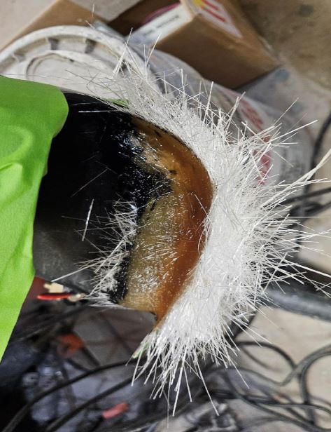 The far rear corner had one inch of fiberglass. Someone’s feeble attempt to perhaps stop a leak.