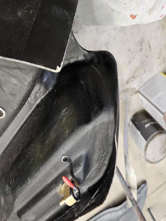 Okay I cut the bottom out and do my repairs. I place the bottom back into place. I insert Federal FAA approved resin (with thickeners and anti-ethanol properties) into a 50cc syringe and run it all around the bottom/top joint. Once that cures, I pour the same thickened resin into the filler neck and coat the joint from the inside. Basically, the bottom is trapped between two strong gussets. Then I leak test when I can. Sometimes I can’t match the filler neck with my neck adaptor. I’d then attempt to leak test using petcocks.