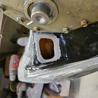 Don’s finished tank. That gray stuff is Duratech a two-part primer. I polished so I could confirm all the surfaces were level and straight. Don’s painter will sand the tank, prime and paint.