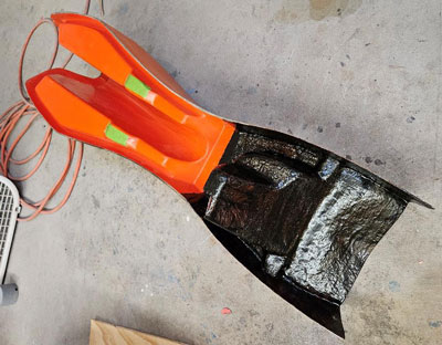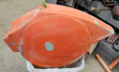 I couldn’t let the tank to go back to Dan looking bad. So I sanded the entire tank and recoated it with orange gelcoat and sanded and polished the tank.