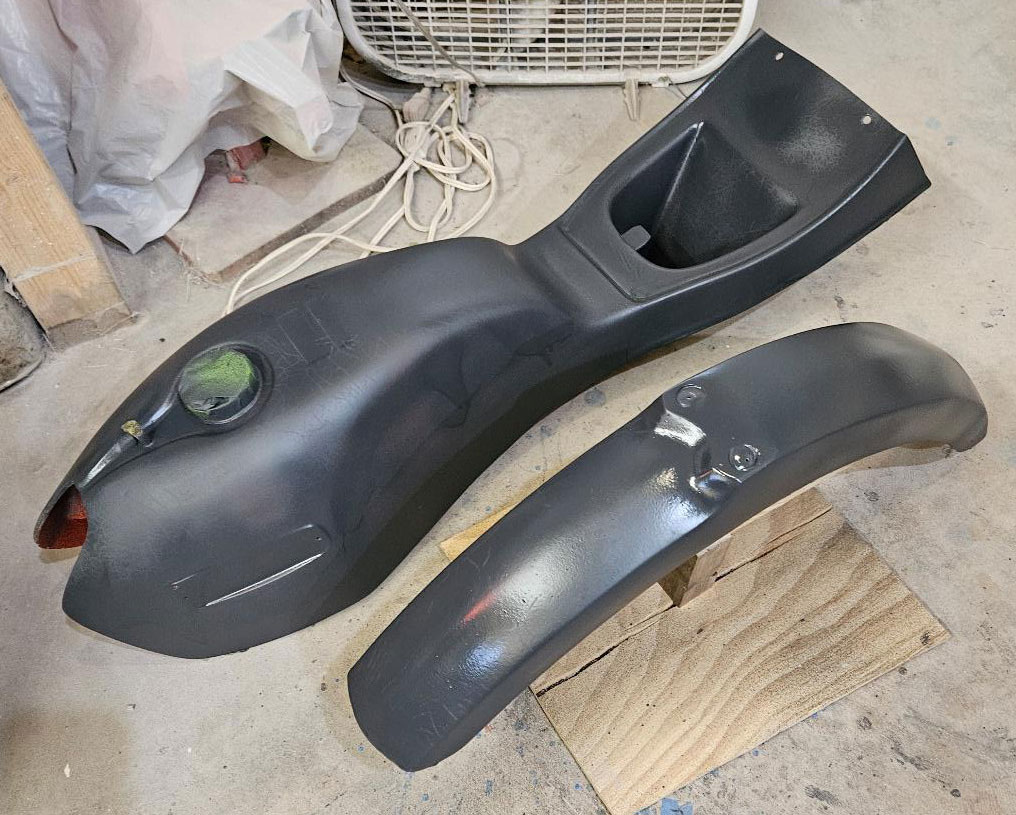 After I sanded all the parts, I used Duratec, a high build gray primer. That filled all the cracks, which can’t return because the parts are now thicker glass. Then I sanded parts smooth and handed them back to John. He has a favorite painter who does all his OSSAs.