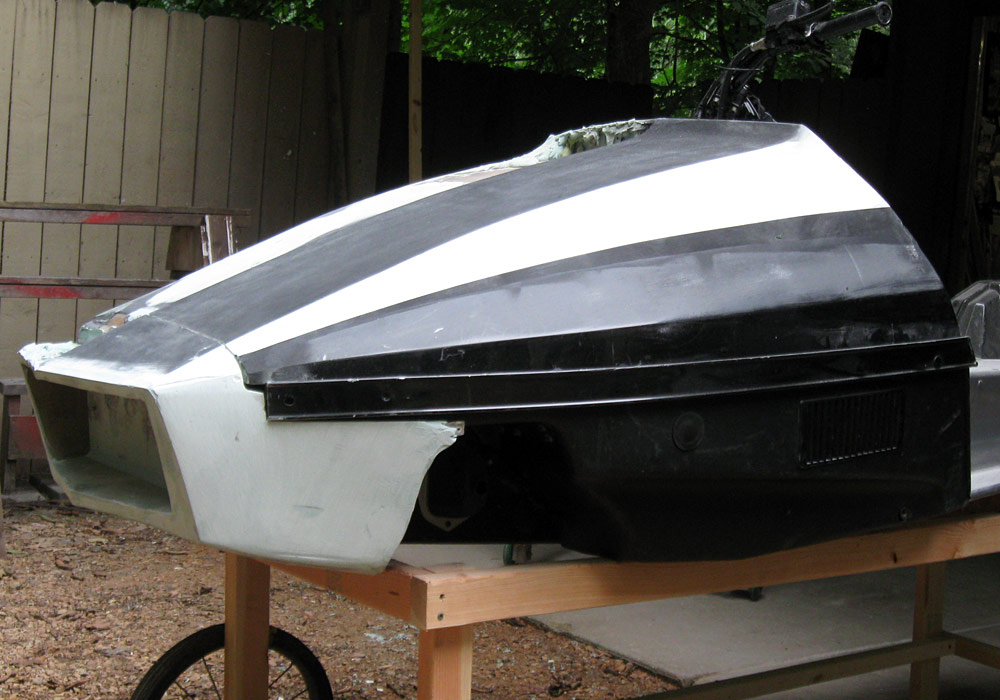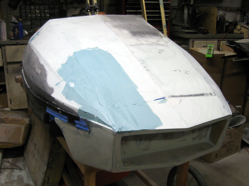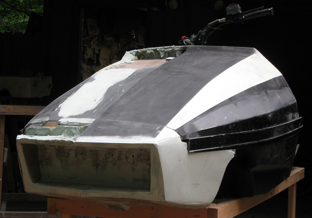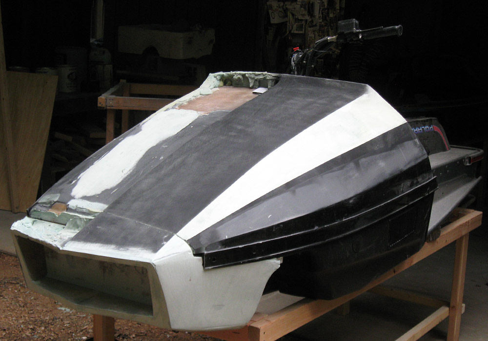 For those of you expecting enough room in the "grill" opening to mount a light-that may not be possible. I learned from our completed Polaris Mini 120 RXL hood that it is hard to get gelcoat and fiberglass into the protruding lips of the nose. I'm going to have to increase the angle of the lower inside grill lip to attempt to fix the problem-it's almost flat now. A reduced grill opening may prevent mounting a light in there.