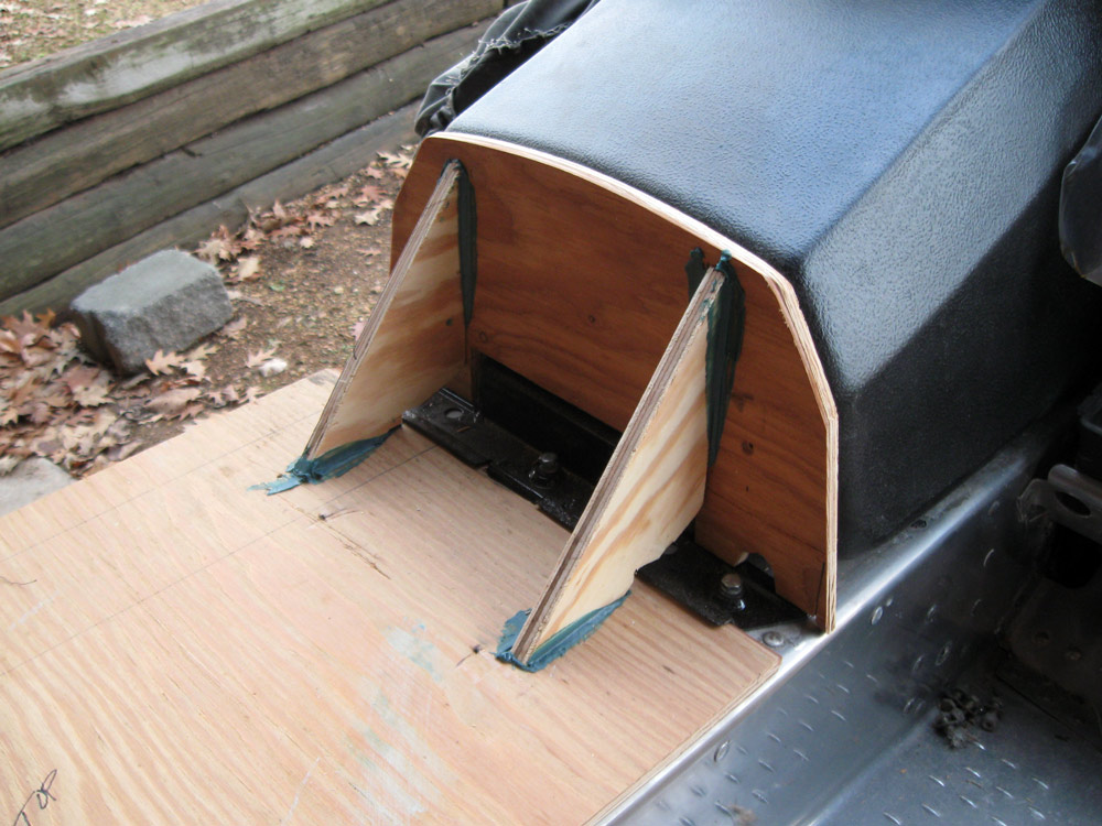 I show you continuing photos of seat mock up. When I got this far I realized the hump was too tall and I'm going to lower it by 1 ½" (see line on wood). At this point in time I am not sure whether I will be offering RXL seats.