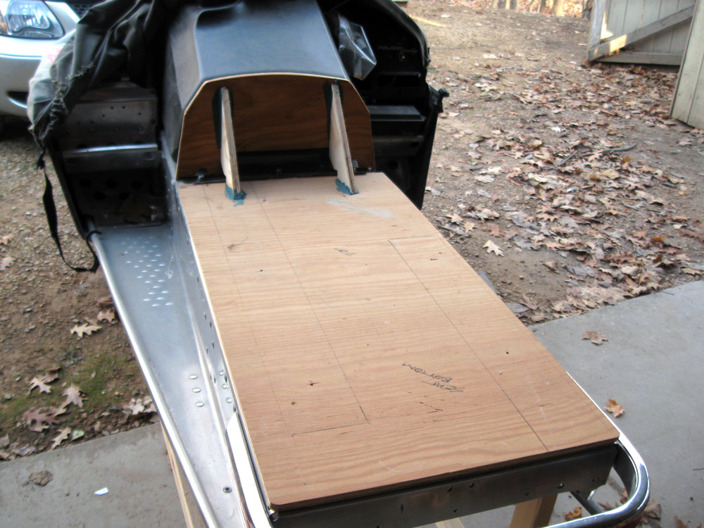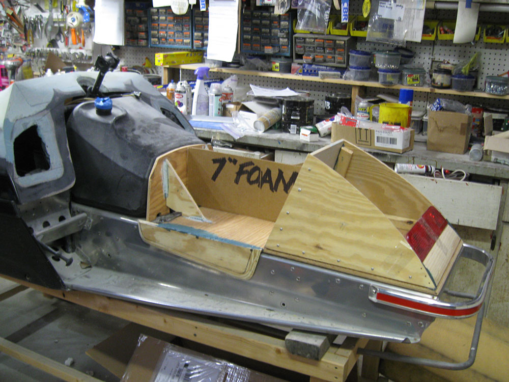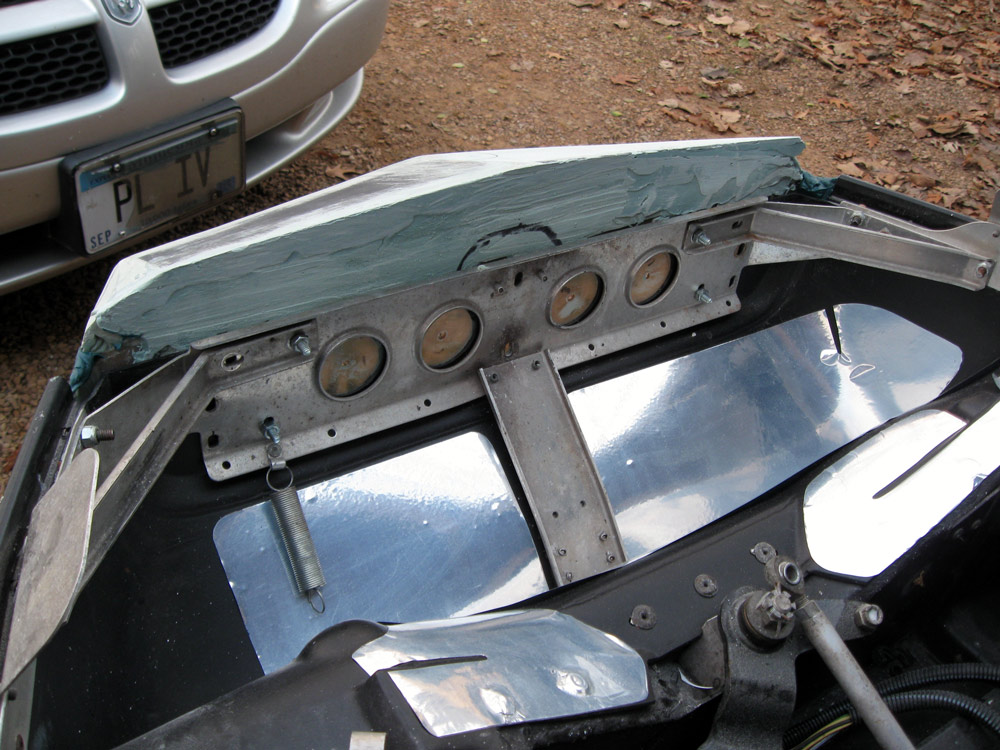 As I make the dash, I will make a space for the tach but not the speedo/odo. Since the hood will detach completely with four bungees, it wouldn't make sense to include speedo because of the long cable. You'd be out on the lake working on the sled with the hood off, tripping all over the cable. That they could see from across the lake... "What's wrong with that guy? Is he drunk?"