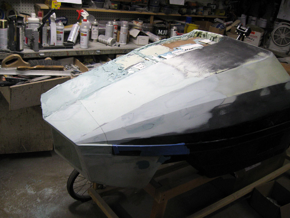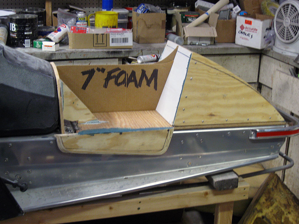 Work this week was shaping the nose. It must be finished first because its position on the sled is fixed and the hood's position can be adjusted to some degree to the nose to achieve a flush fit. I didn't realize how big the nose piece would be-its 32" wide.